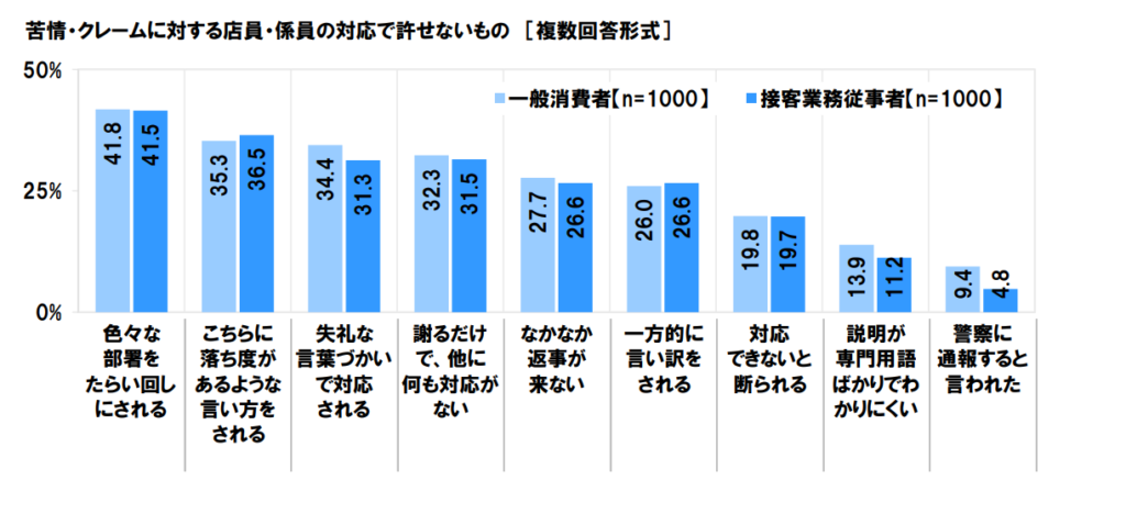 日本労働組合総連合会(2017)[1]の調査ではクレームに対する態度と消費者の心理の調査が行われました。その結果が下図となります。