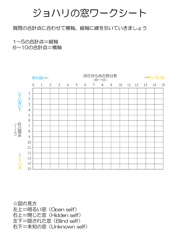 さて、それぞれの合計点が出たら、いよいよ窓を書いていきます。まずは、下記のワークシートを使っていきます。