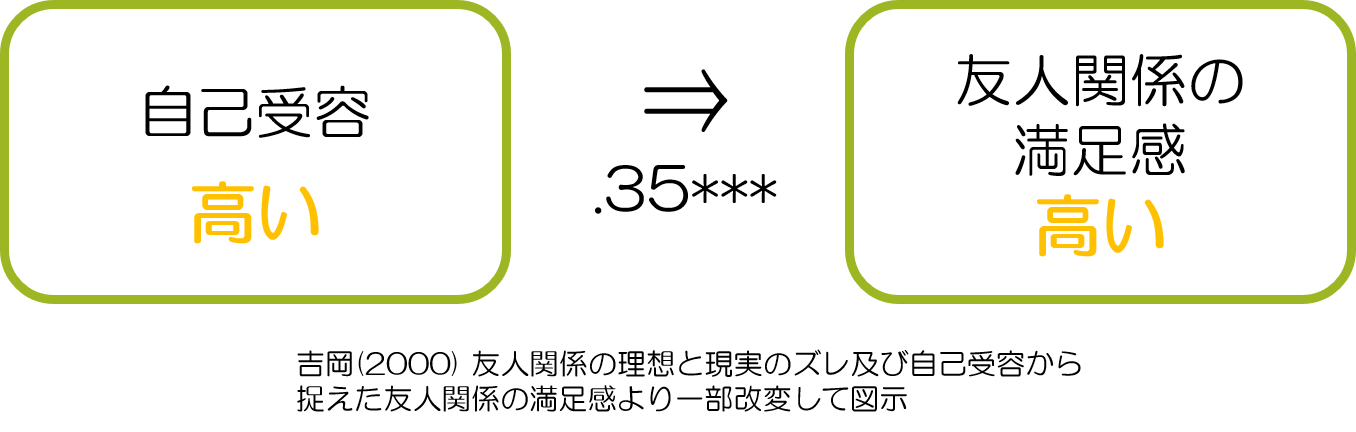 ・出典[1] 中島 義明・[2] 飯長 喜一郎 (2012). 自己受容 人間性心理学会(編)人間性心理学ハンドブック (p. 323) 創元社[3] 吉岡 和子 (2000). 友人関係の理想と現実のズレ及び自己受容から捉えた友人関係の満足感 青年心理学研究, 13, 13-30.[4] 田場 あゆみ・倉戸 ヨシヤ (1995). 青年期後期における身体像と自己受容, 他者受容との関係について 大阪市立大学生活科学部紀要, 43, 225-236.[5] 川崎 直樹・小玉 正博 (2006). 自己に対する受容的認知のあり方から見た自己愛と自尊心の相違性 心理学研究, 80, 527-532.[6] 伊藤 涼(2006).大学生の優柔不断と自己受容感との関連について 愛知淑徳大学大学院心理医療科学研究科修士論文抄録集 9号, p. 25-26.[7] Kim, S., & Gal, D. (2014). From Compensatory Consumption to Adaptive Consumption: The Role of SelfAcceptance in Resolving Self-Deficits. Journal of Consumer Research, 41, 526-542.[8] 安達 知郎・安達 奈緒子 (2019). 大学新入生に対するアサーション・トレーニングの効果 教育心理学研究, 67, 317-329.[9] 益子洋人(2010).大学生の過剰な外的適応行動と内省傾向が本来感におよぼす影響 学校メンタルヘルス13巻1号