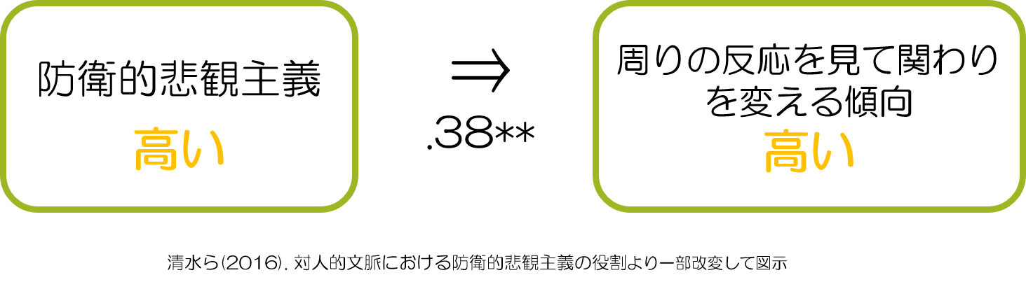 清水ら(2016)は大学生122名を対象に、対人関係における防衛的非観主義の役割を検討しました。その結果、以下に示すことが明らかになりました。
